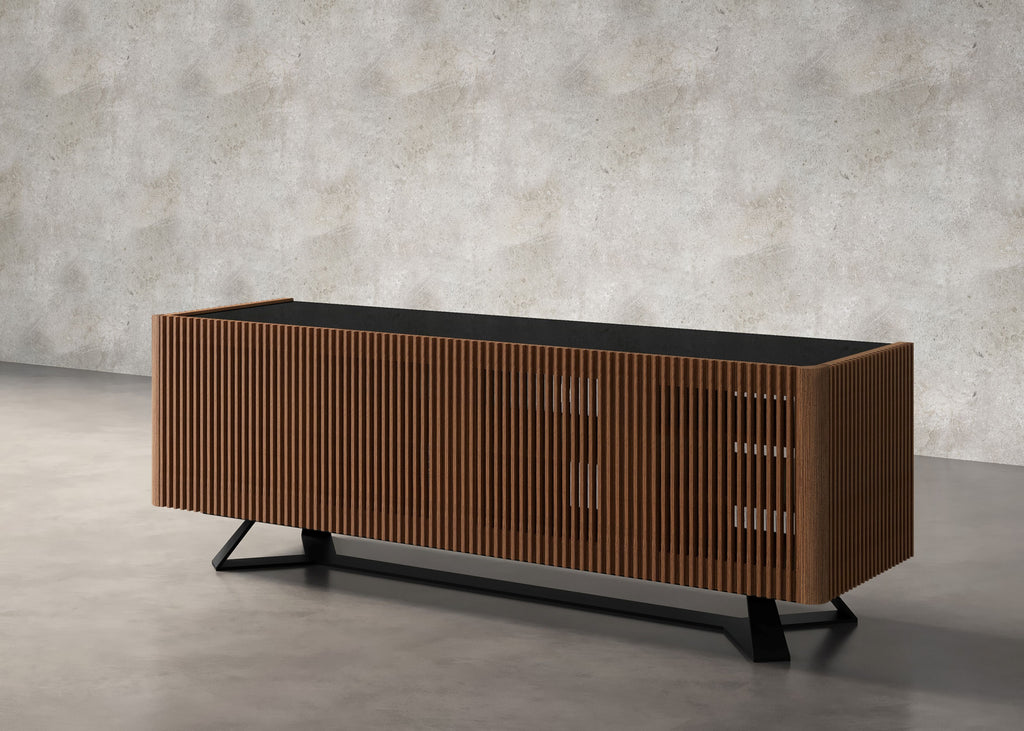 * Slatted solid wood doors that allow IR transmission and sound